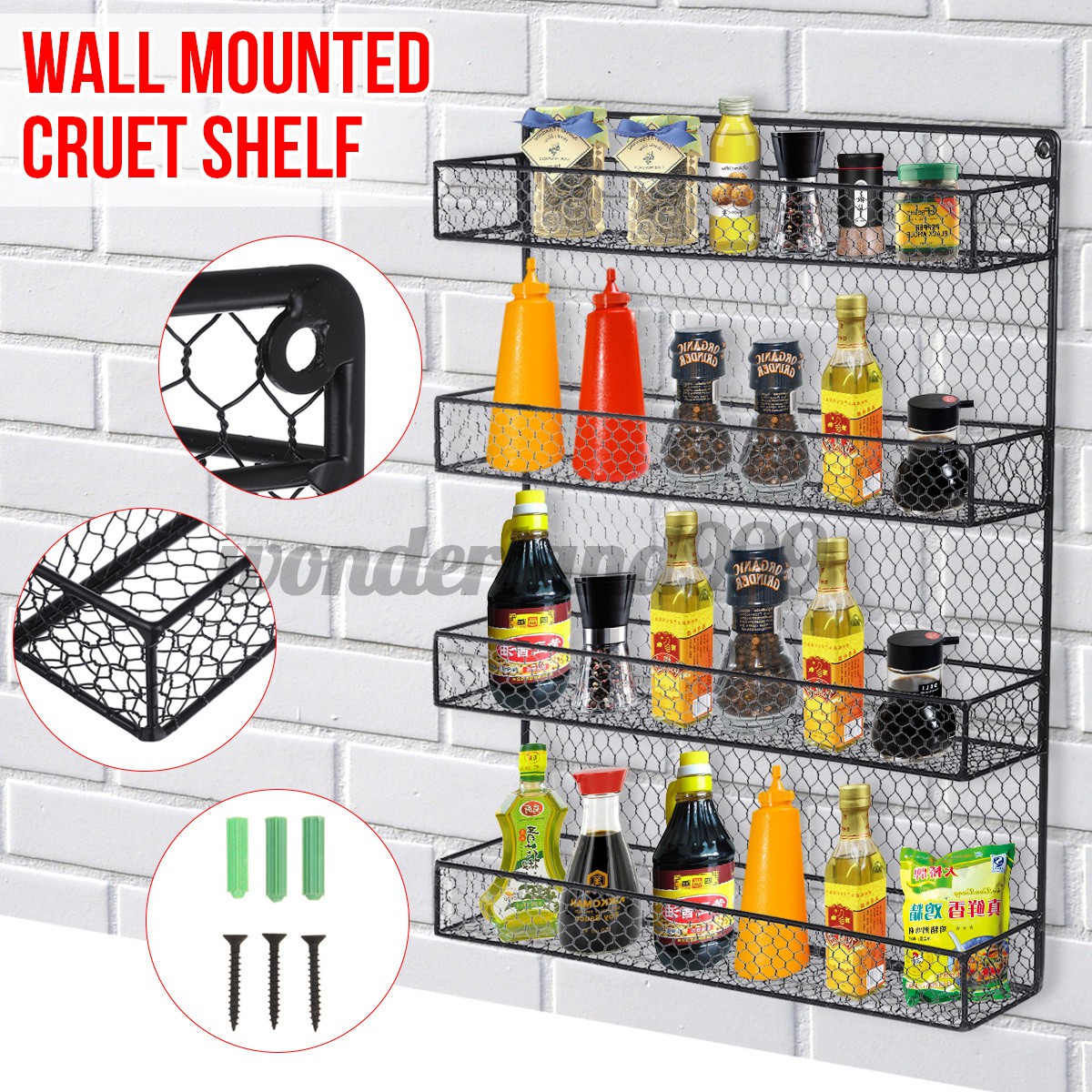 Wall Mounted Spice Can Shelving Holder Kitchen Door Storage Rack Cabinet Hanging Organizer 53 43cm 8cm Depth Wrought Iron Seasoning Rack Kitchen Shelf Rack Shelf Kitchen Storage Rack Organizer Shopee Indonesia